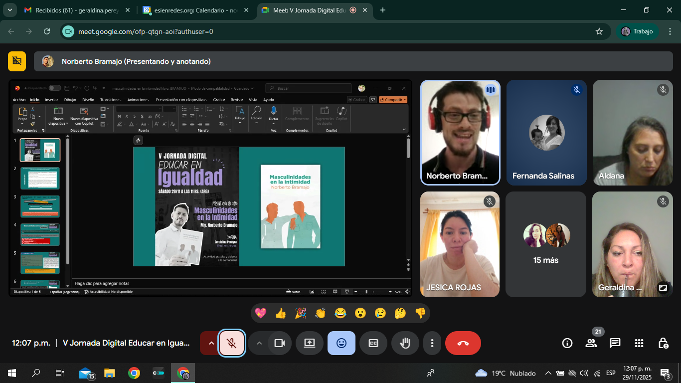 Organización y coordinación de la V Jornada virtual de formación y debate para fortalecer la Educación Sexual Integral y la igualdad desde una perspectiva de géneros y en red.